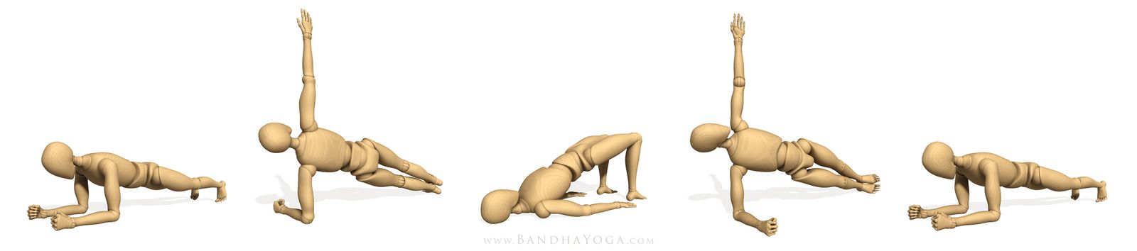 Return to Forearm Plank Pose and then repeat the sequence, this time starting with left Side Forearm Plank Pose.